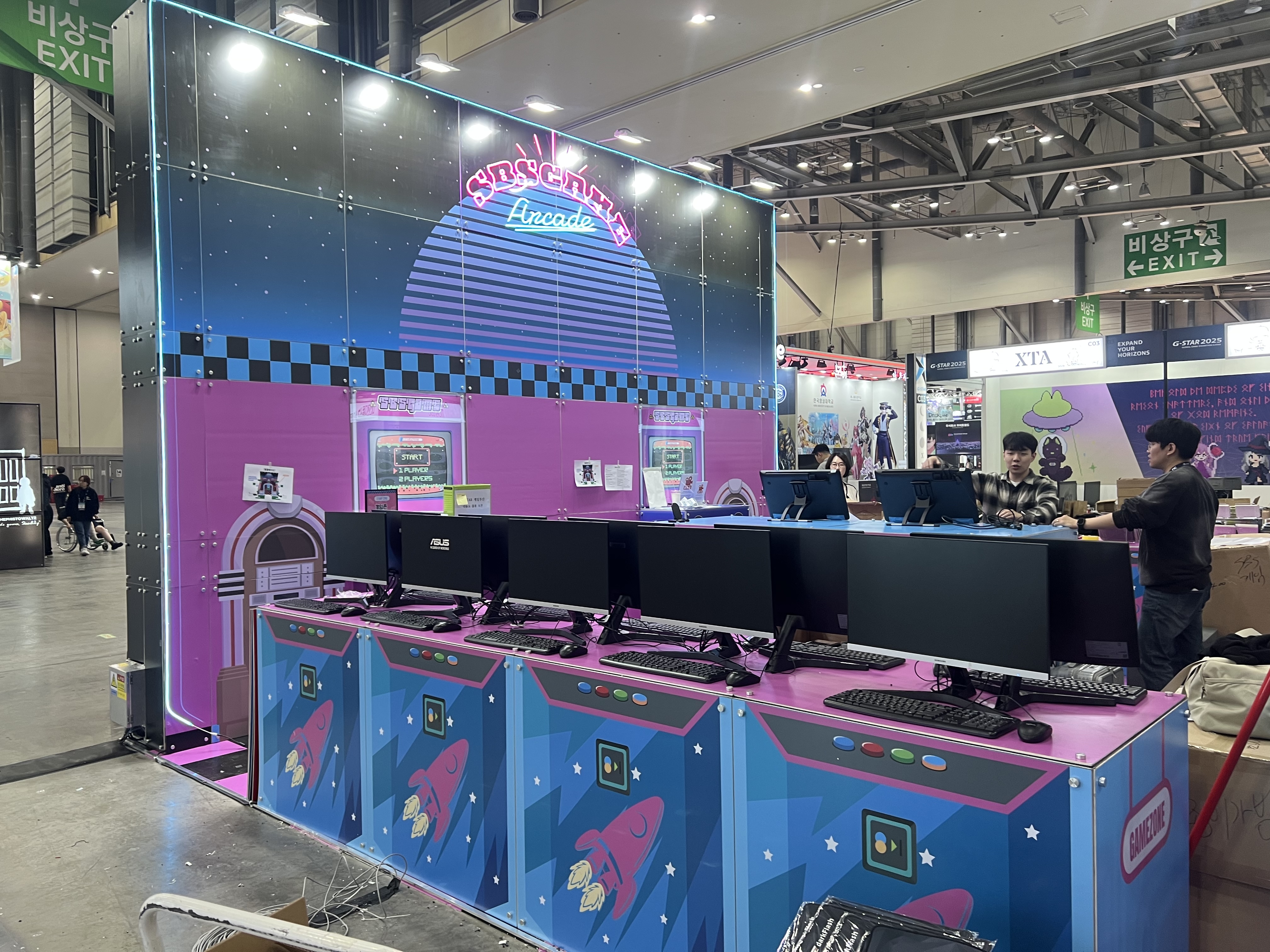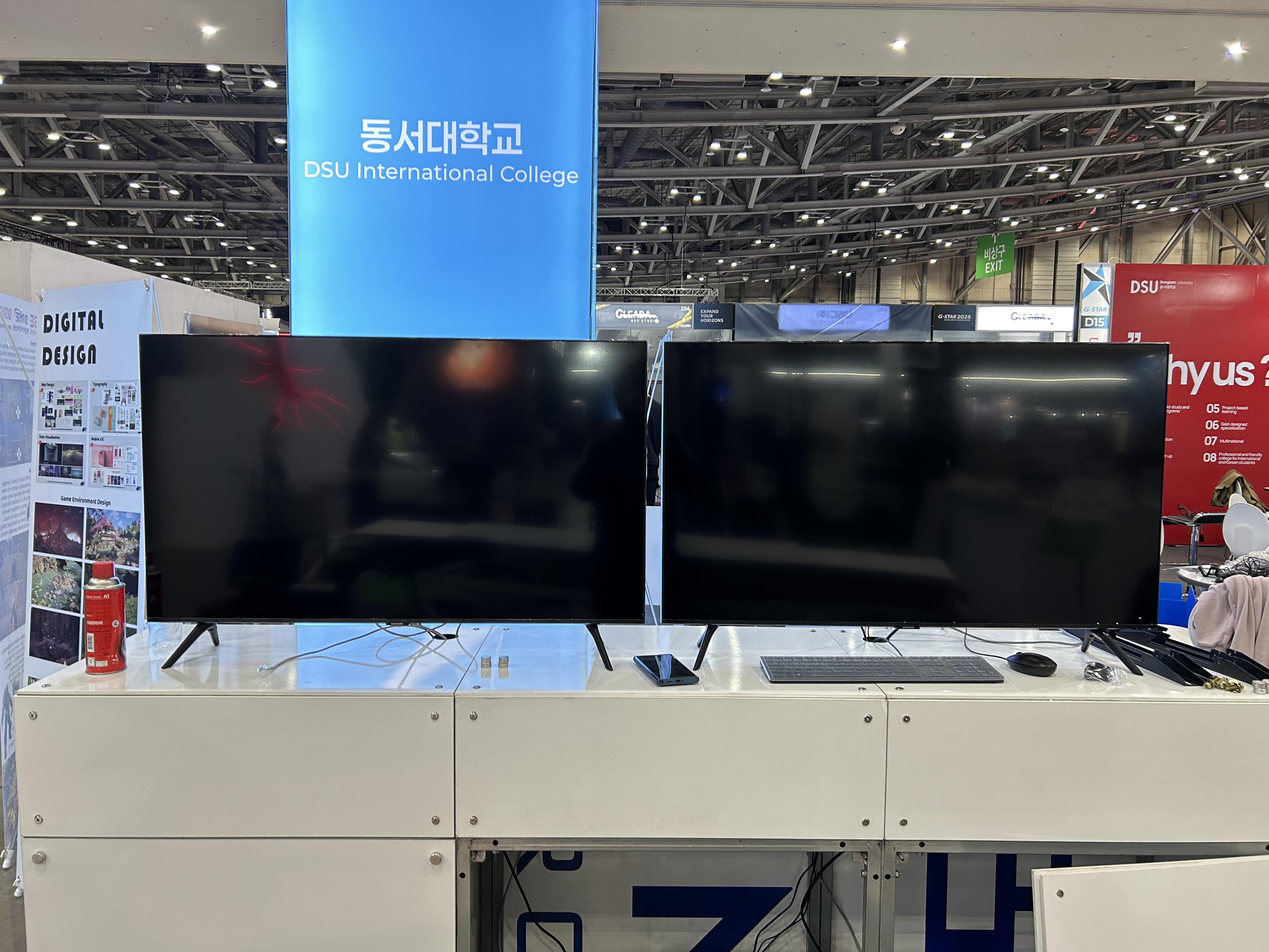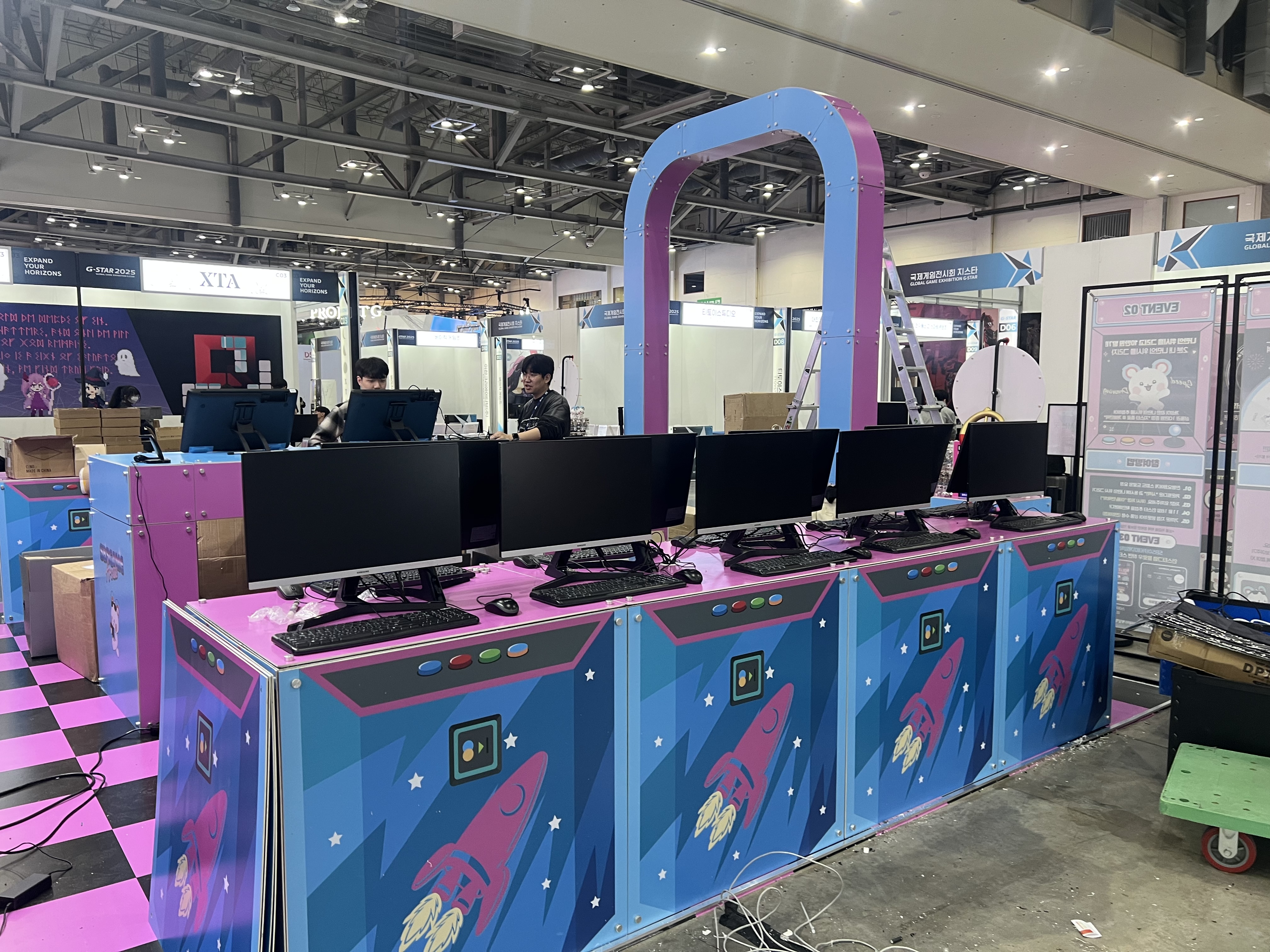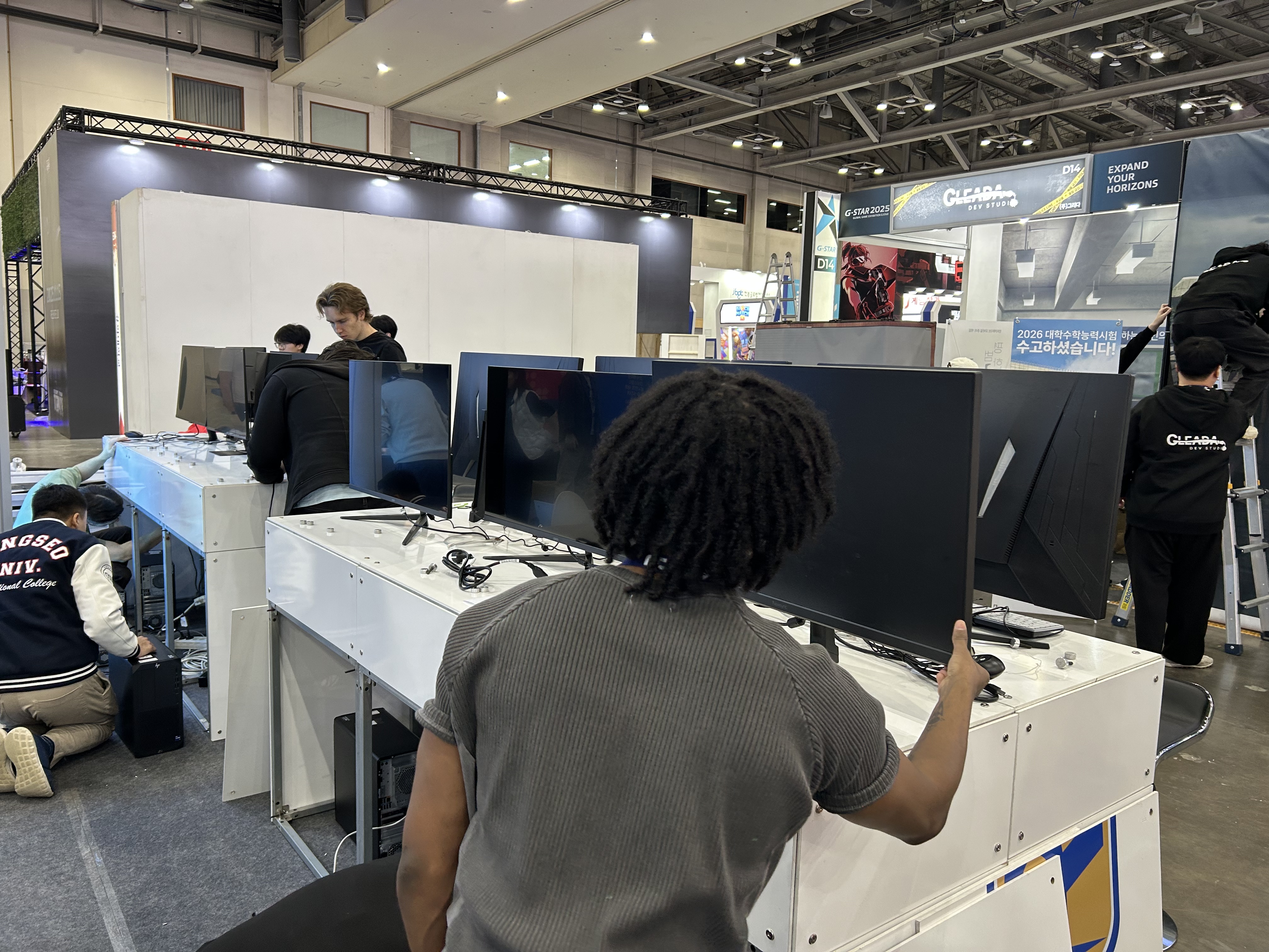 다행히 사전에 부스 배치도를 받아서 동선을 미리 계획했기 때문에 생각보다 순조롭게 진행됐습니다. 각 컴퓨터마다 시연할 게임을 설치하고, 그래픽 설정을 최적화하고, 문제가 없는지 하나하나 테스트했습니다.