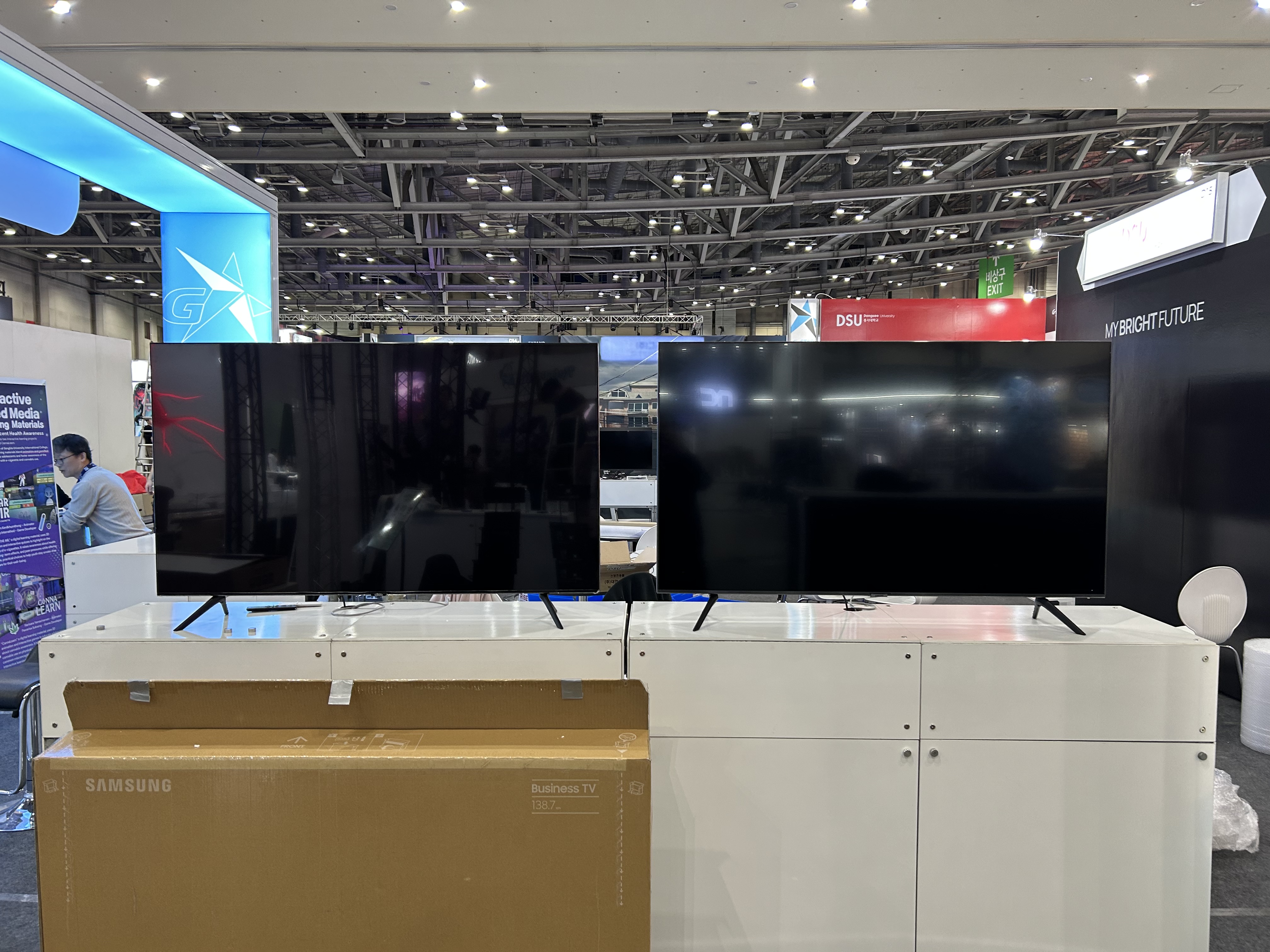 이번에 TV와 모니터 70여 대를 납품했지만, 사실 저희는 모니터만 400대 이상 보유하고 있습니다. 24인치 사무용 모니터부터 27인치, 32인치 게이밍 모니터, 심지어 곡면 모니터까지 다양합니다. 대형 행사에서 갑자기 추가 요청이 들어와도 바로 대응할 수 있는 게 저희의 큰 강점입니다.