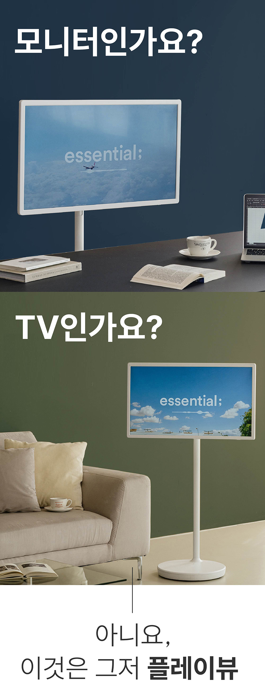 스탠바이미는 작은 공간에서 OTT 콘텐츠 감상에 최적화된 제품이고, 플레이뷰는 비즈니스 또는 교육 용로로 더 큰 화면과