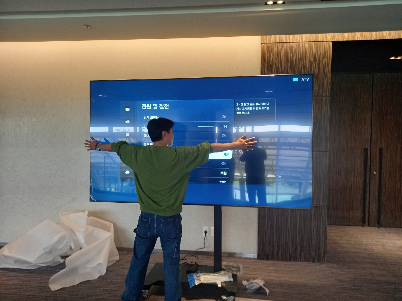 부산 삼성 100인치 TV 렌탈. 파라다이스호텔에 TV 대여 완료
