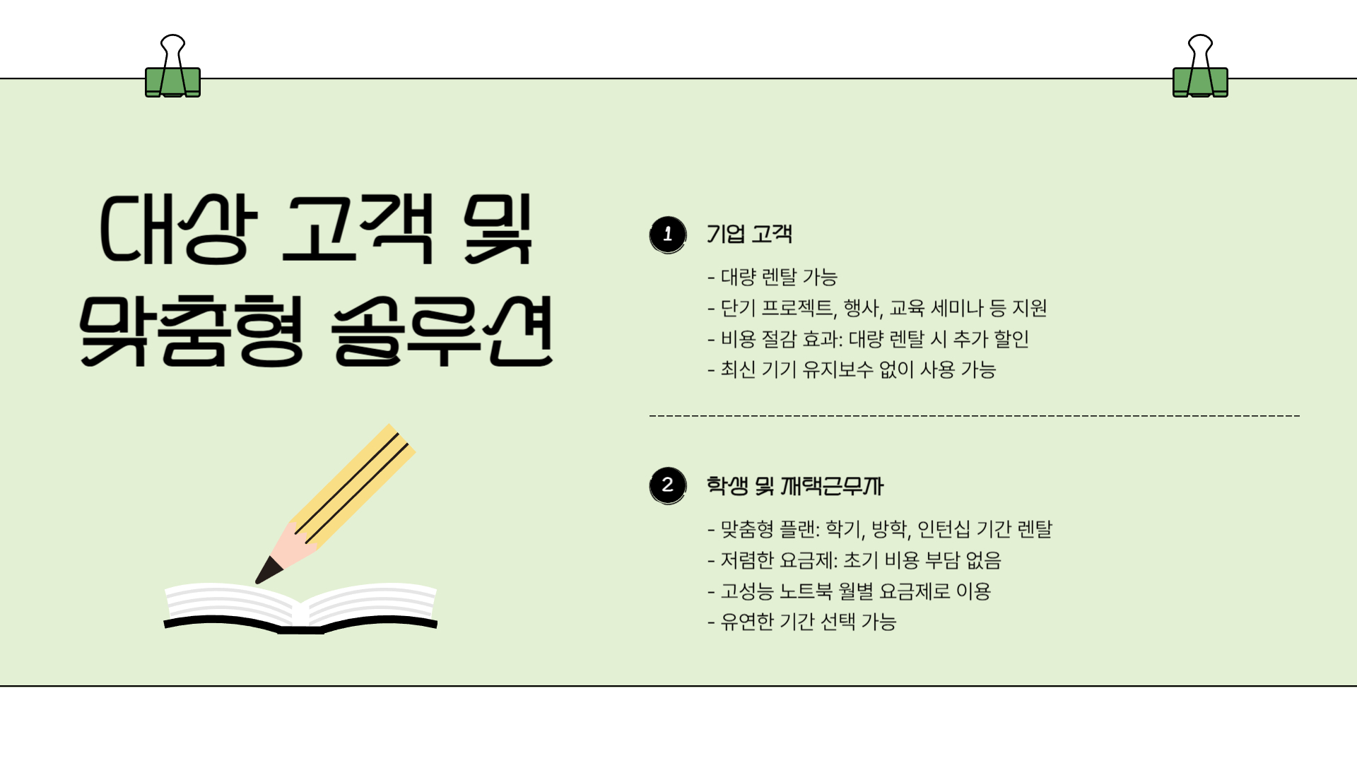 - 맞춤형 플랜: 한 학기, 방학, 단기 인턴십 기간 동안 필요한 기간만큼만 렌탈