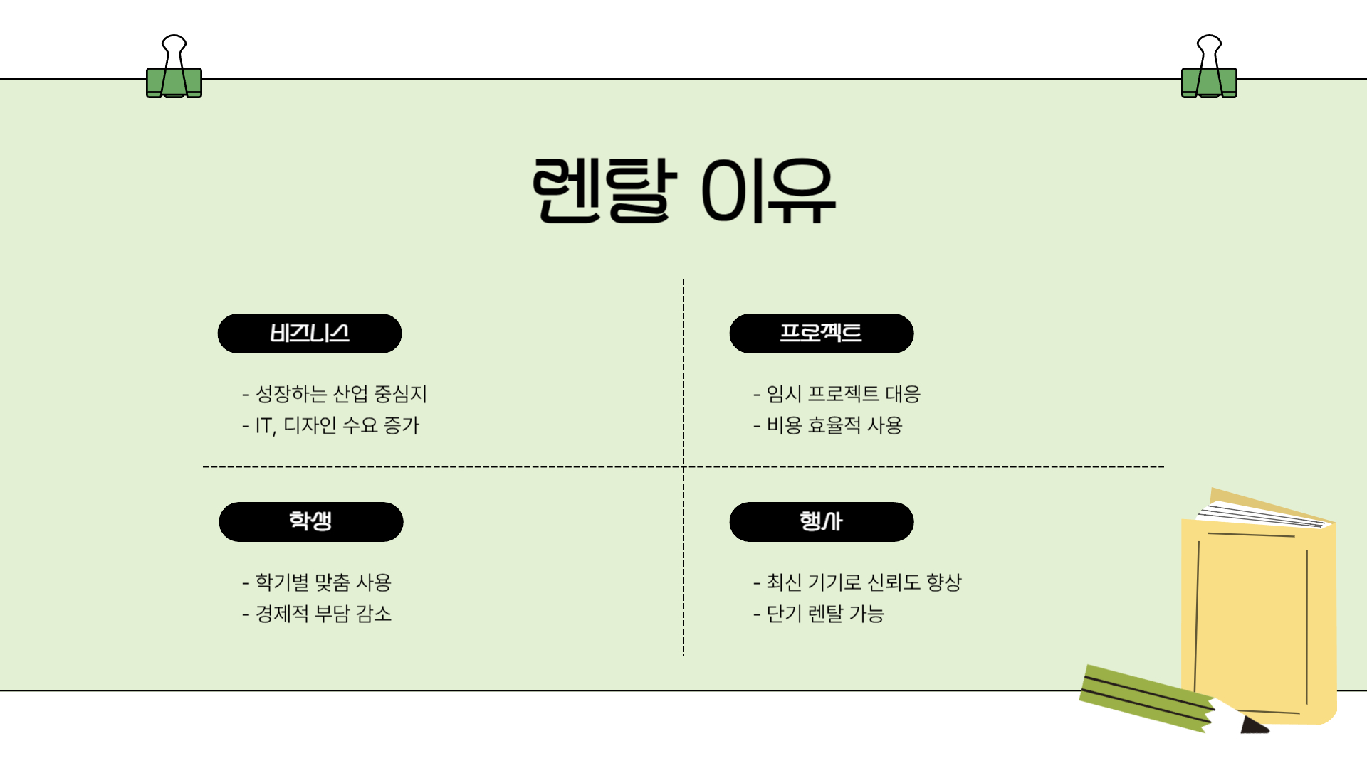 - 비용 절감 효과: 대량 렌탈 시 추가 할인 제공, 최신 기기를 유지보수 없이 사용