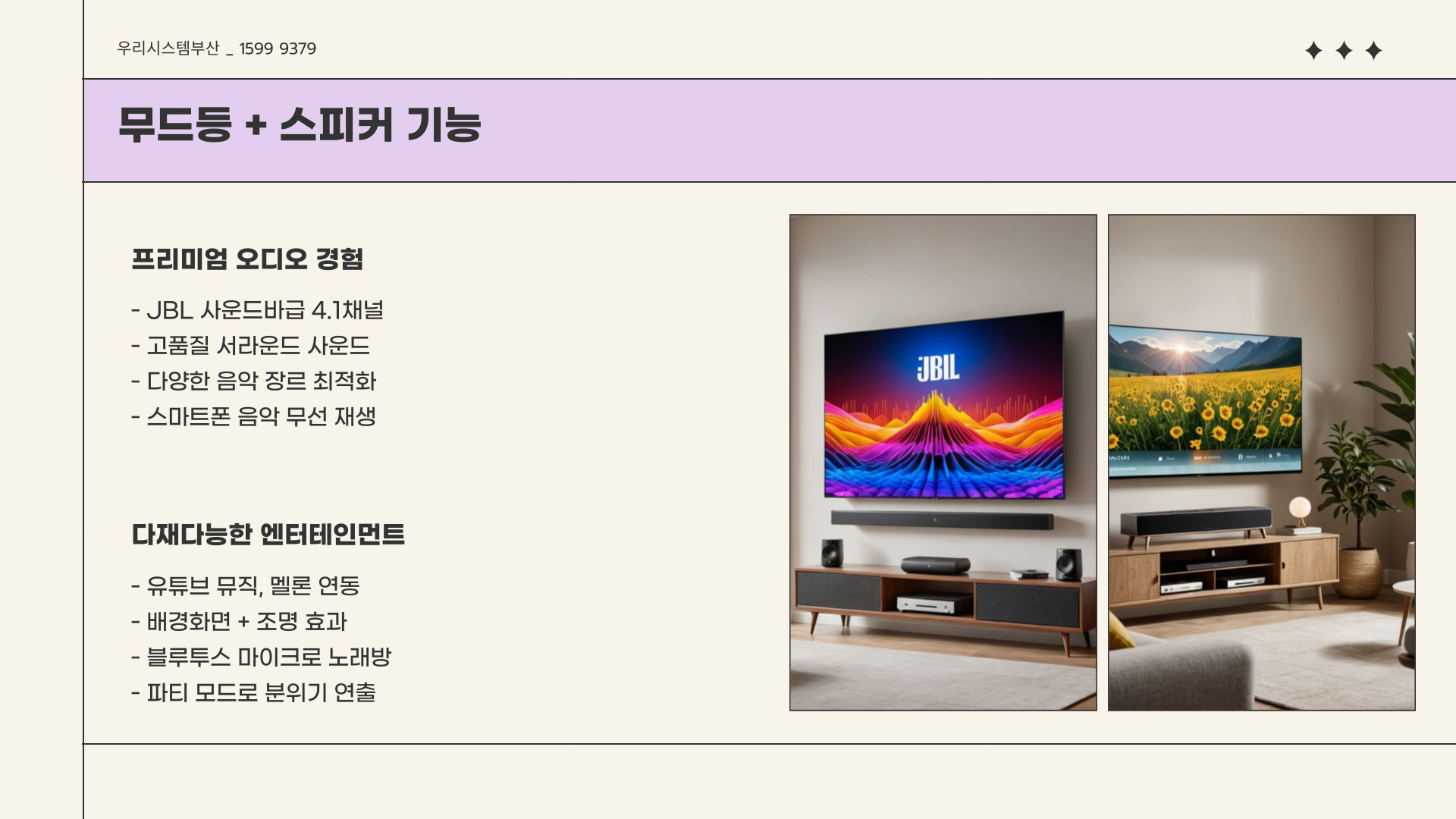 - 🔮 무드라이트 모드: 음악과 함께 조명 효과
