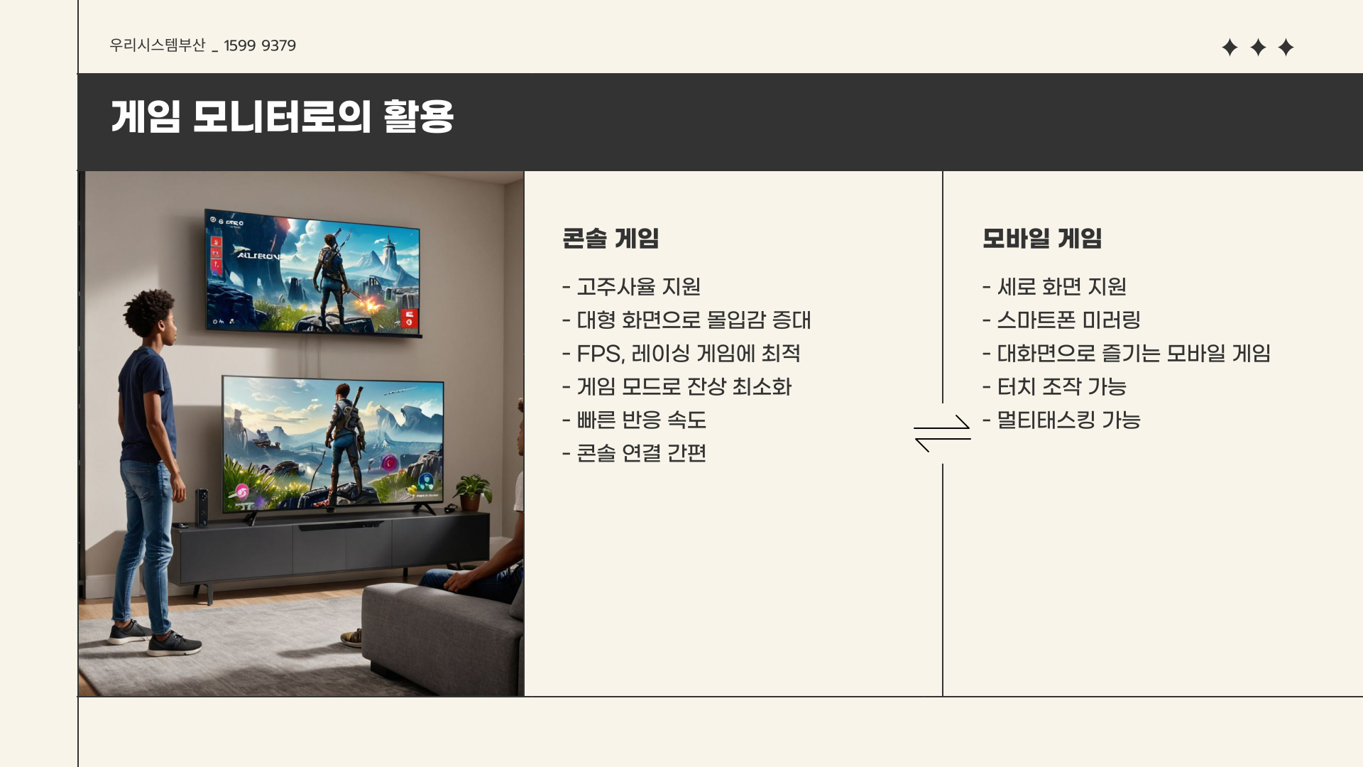 - 🎯 FPS 게임할 때 대형 화면 + 빠른 반응 속도