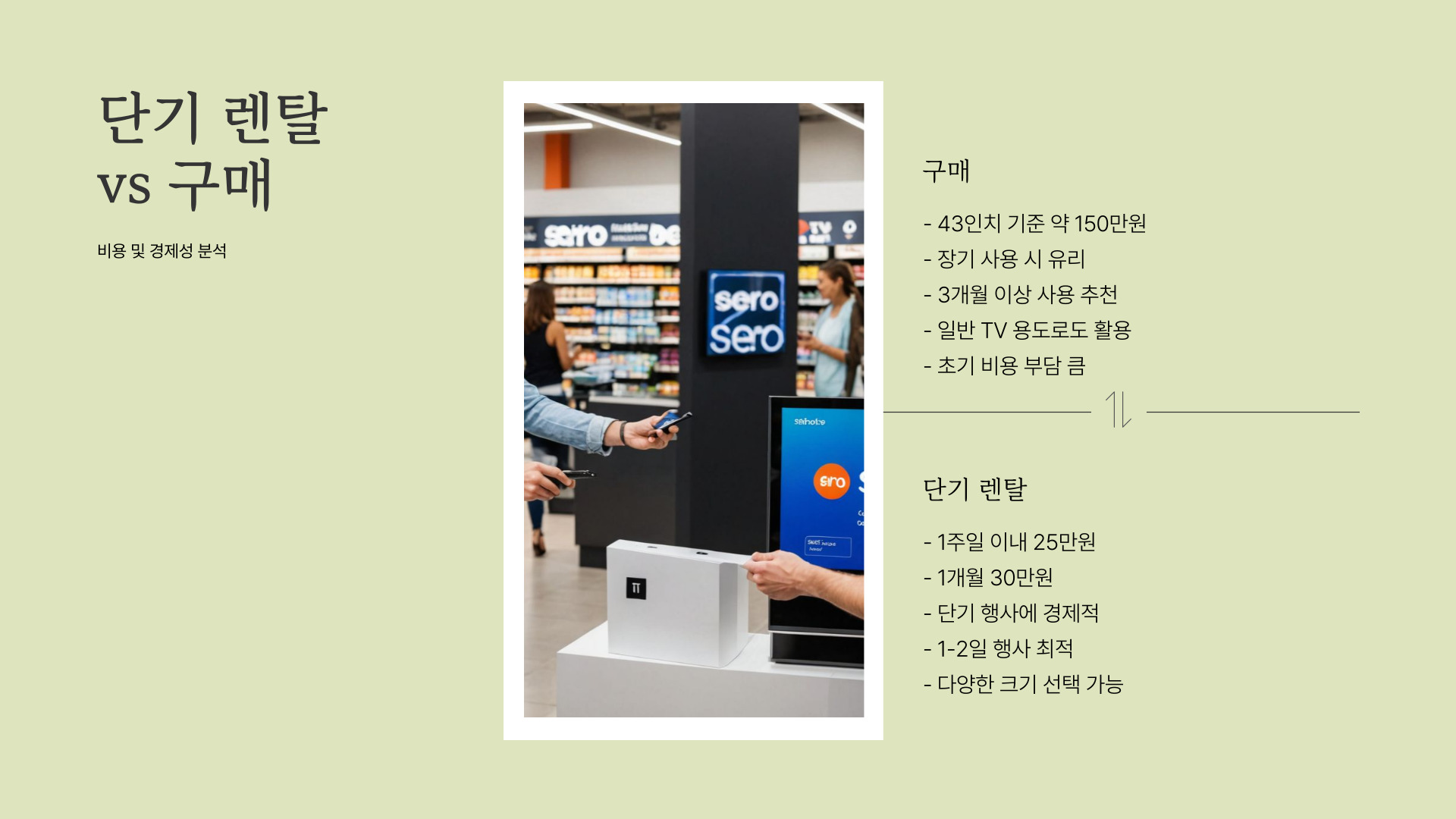 더 세로 TV를 직접 구매하는 것과 단기 렌탈하는 것,