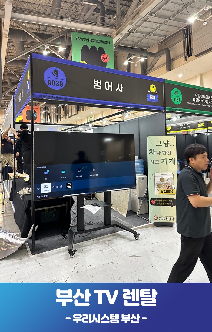 범어사에서 대여를 요청 하셨고 우리시스템부산에서는 삼성 85인치 TV(티비)를 전시 부스에 단기 렌탈 해 드렸습니다.