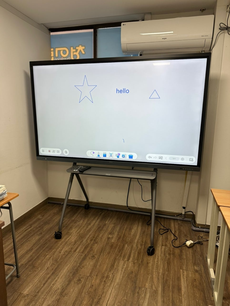 반면, 전자칠판은 밝은 환경에서도 화면이 선명하게 보이고, 판서나 터치로 진행이 가능해 정말 효율적입니다! 특히 1~2일 정도 단기간만 사용하는 경우라면, 렌탈이 가격적으로도 훨씬 유리합니다.